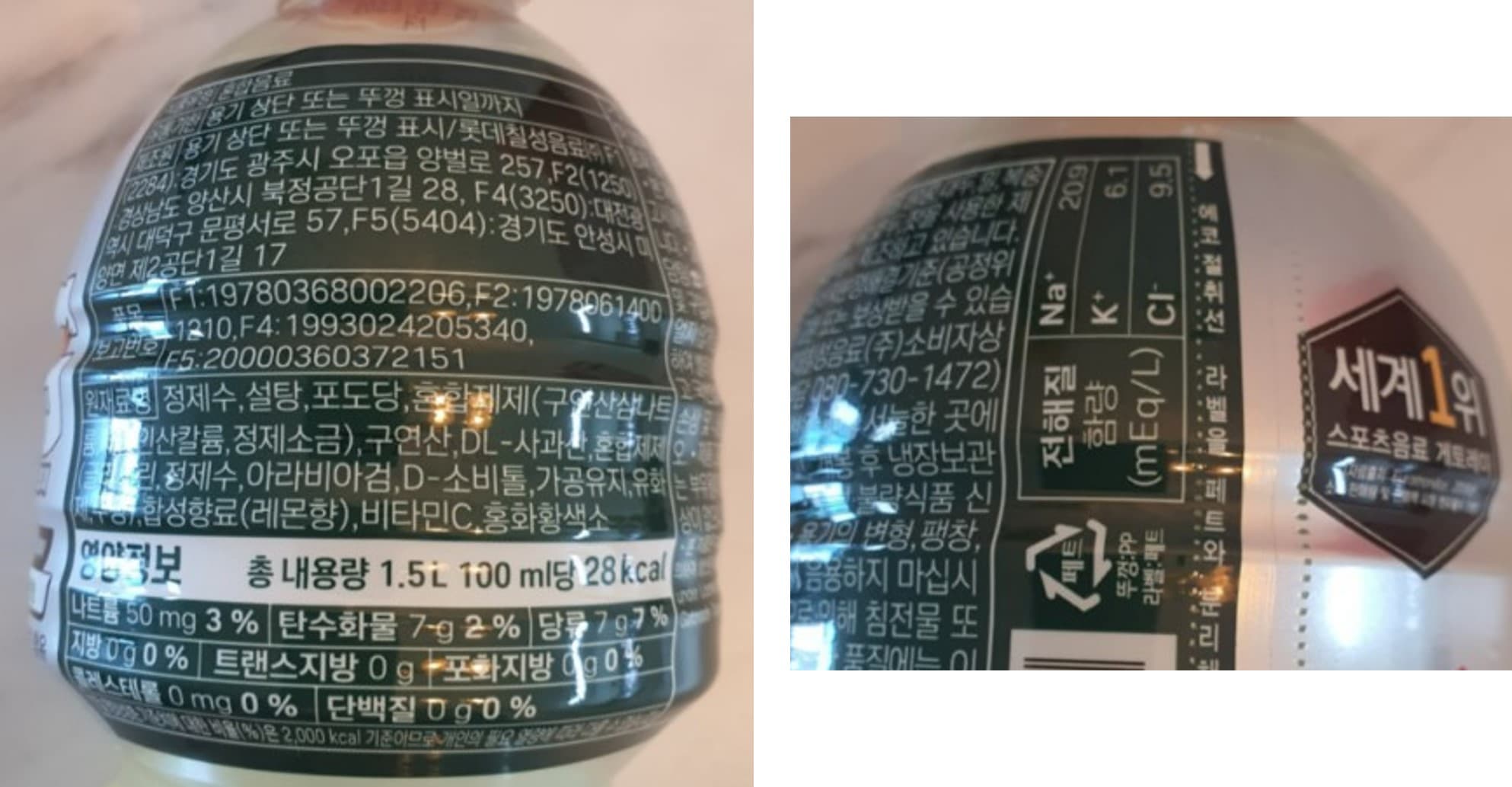 - 칼로리 : 100ml당 28kcal (1.5L 총 칼로리 420kcal)